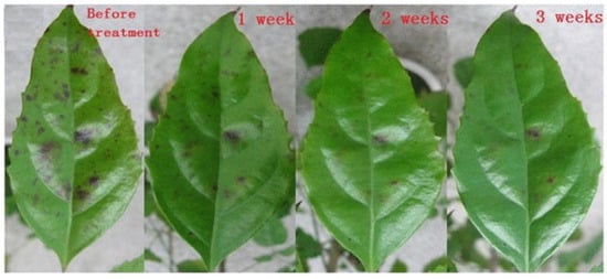 Plasma treatment drastically eliminated the initial symptoms of a fungus-infected leaf and advanced symptoms after 1–3 weeks plasma treatment. Reprinted with permission from Ref. [35]. Copyright 2014 AIP Publishing.