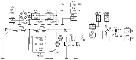 The circuit has three parts: a low voltage power supply module, a drive signal generating module, and a high voltage generating module (for more complex plasma generator circuits please see our other models [15,16]). The complete description of the circuit from Figure 2 is given in the Supporting Information (SI) file (the entire setup—Figure S3; the printed circuit boards (PCB)—Figures S5 and S6). For our experiments, we built the plasma system described above in two variants: a light and portable version (demonstration unit) which has only a single plasma applicator head with an activation width of 50 mm (Figure S7) and a larger version which is intended for laboratory use for the plasma treatment of larger surfaces, with an activation width of 300 mm (Figure S8).