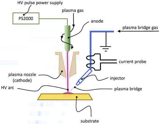 The plasma bridge gas was injected into the plasma zone through an external injector (see Figure 1 and Figure 2) made of brass, with an orifice diameter of 1.5 mm. The axial and radial position and the angular orientation of the injector are adjustable.