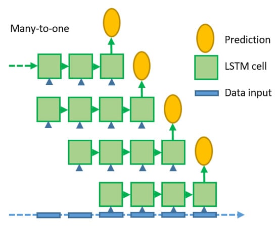 Schematic of the sliding many-to-one implementation of LSTM. (Source: Croonen [18]).