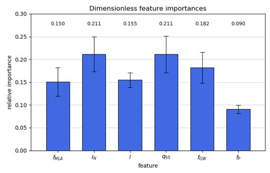 Relative importance of the different dimensionless input features, as obtained from the random forest model.