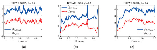 (a–c) Total normalized (), and thermal normalized () as a function of time are plotted for high- KSTAR discharges (16295, 16296 and 16297).