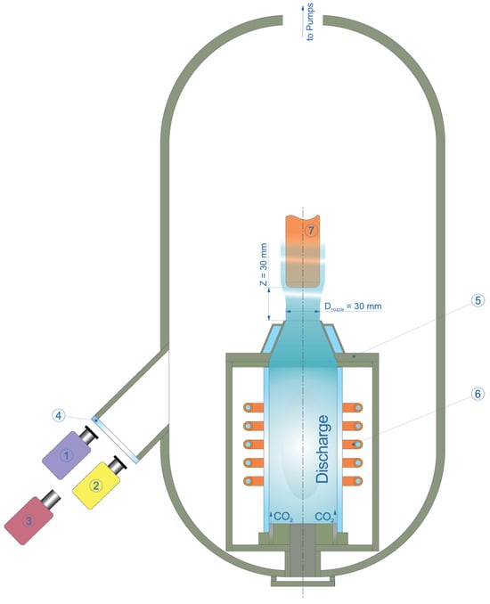 - Gordeev, A.N.; Kolesnikov, A.F.; Sakharov, V.I. Flow and heat transfer in underexpanded nonequilibrium jets of carbon dioxide: Experiment and numerical simulation. High Temp. 2015, 53, 272–278. [Google Scholar] [CrossRef]