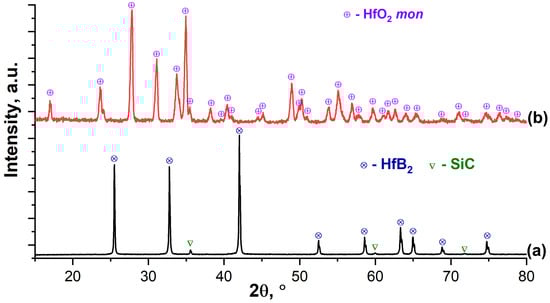 - Simonenko, E.; Simonenko, N.; Gordeev, A.; Kolesnikov, A.; Lysenkov, A.; Nagornov, I.; Sevast’yanov, V.; Kuznetsov, N. Oxidation of Porous HfB2–SiC Ultra-High-Temperature Ceramic Materials Rich in Silicon Carbide (65 vol%) by a Supersonic Air Flow. Russ. J. Inorg. Chem. 2020, 65, 606–615. [Google Scholar] [CrossRef]