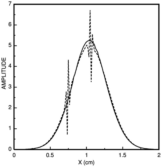 When diffusion is negligible, the algorithm reverts to the fourth-order implicit algorithm developed by Steinle and Morrow [5]. This gives very accurate results with no numerical diffusion or ripples, as demonstrated in Figure 4 for a square wave of electrons moving from left to right, with c = 0.8 and s = 0, and with w = 2 × cm/s.