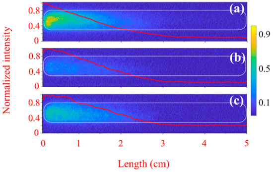 3.2. Longitudinal and Radial Distribution of the Emitted Plasma Light Obtained by 4QuikE Camera