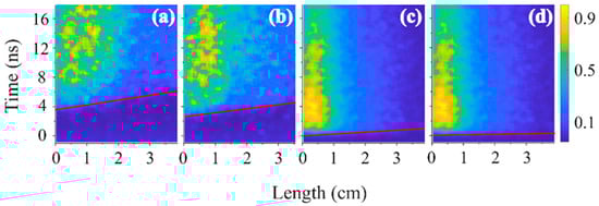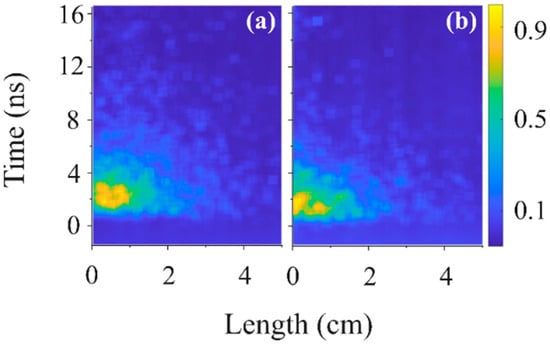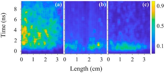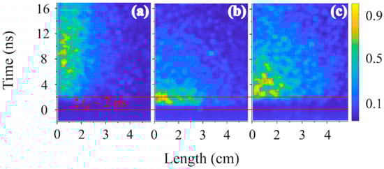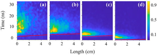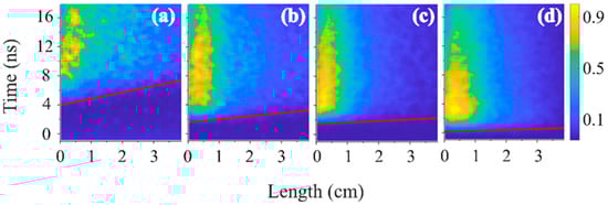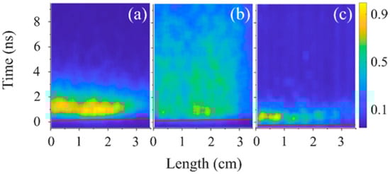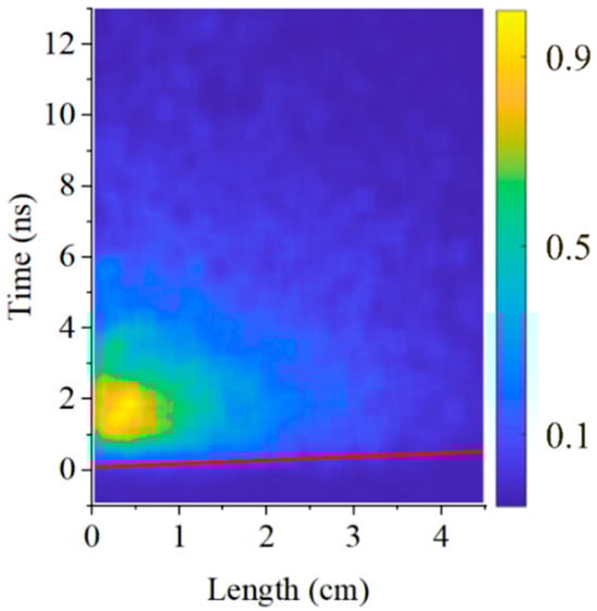 3.3. Longitudinal and Radial Distribution of the Emitted Plasma Light Observed by a Streak Camera