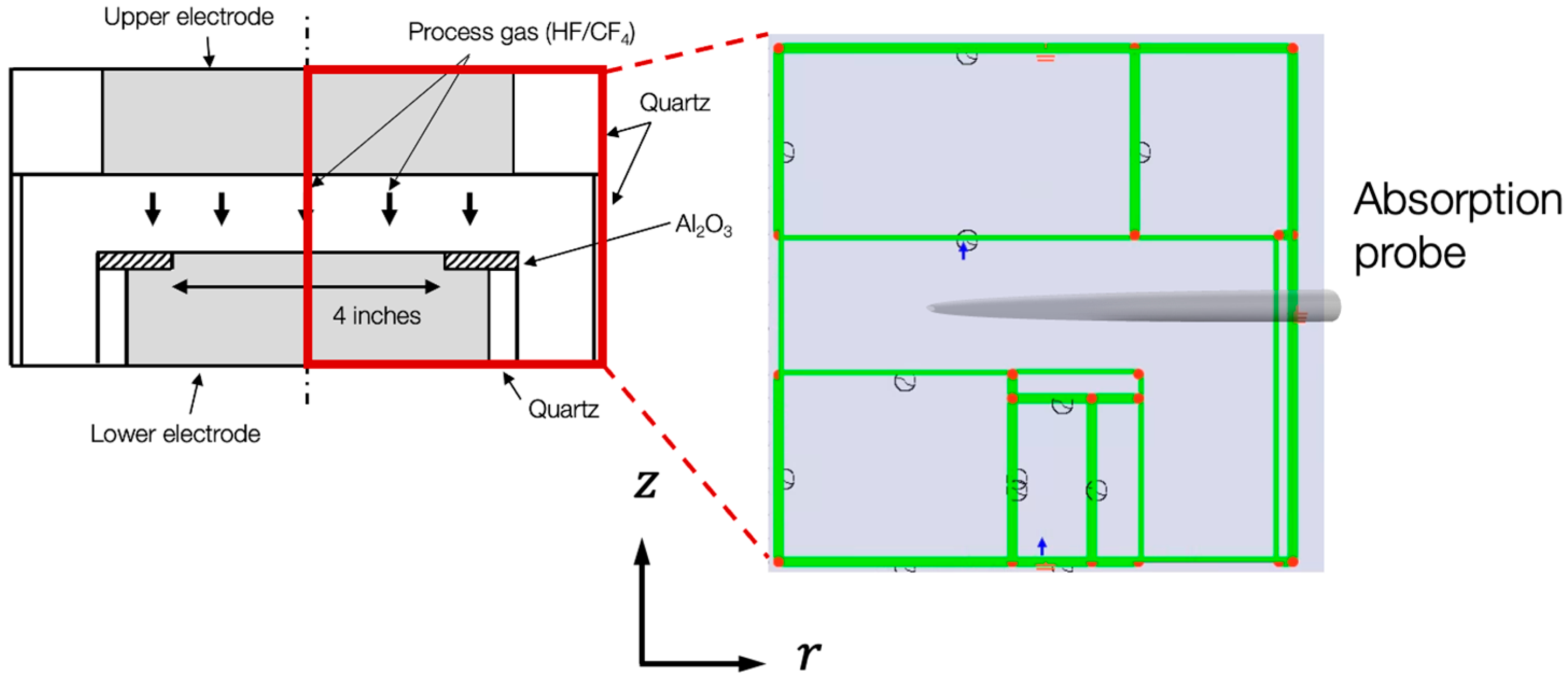 - Ho, P.; Johannes, J.E.; Buss, R.J.; Meeks, E. Modeling the plasma chemistry of C2F6 and CHF3 etching of silicon dioxide, with comparisons to etch rate and diagnostic data. J. Vac. Sci. Technol. A 2001, 19, 2344–2367. [Google Scholar] [CrossRef]
