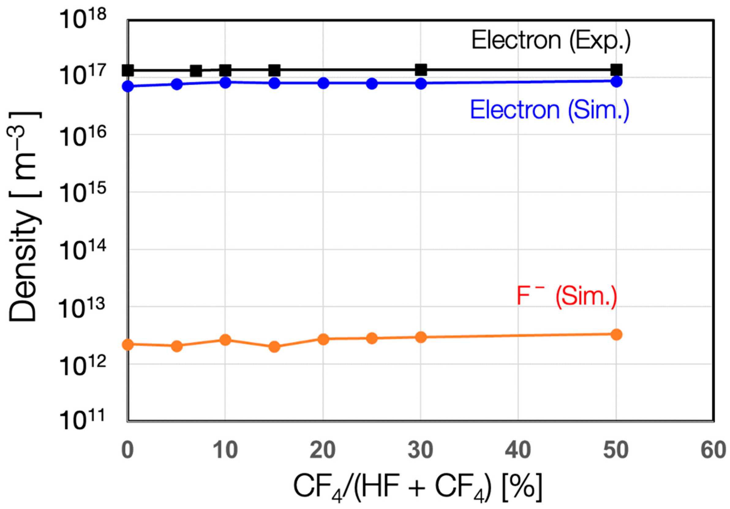 - Takagi, S.; Hsiao, S.-N.; Ma, C.-Y.; Sekine, M.; Matsunaga, F. Plasma simulation of HF plasma generated in dual-frequency chamber for high aspect ratio dielectric etching. Jpn. J. Appl. Phys. 2024, 63, 09SP21. [Google Scholar] [CrossRef]