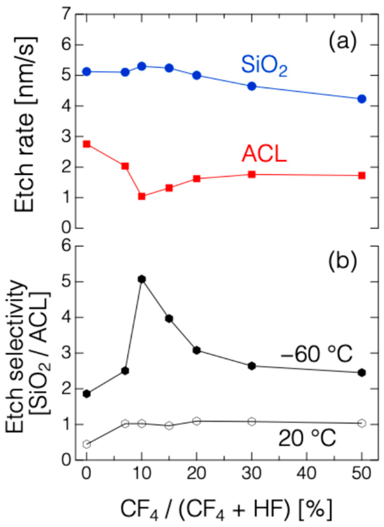 - Hsiao, S.N.; Imai, Y.; Sekine, M.; Suda, R.; Iijima, Y.; Kihara, Y.; Ishikawa, K.; Hori, M. Revolutionizing reactive ion etching: Ion-enhanced surface autocatalytic reactions enabling ultra-high throughput using cryogenic hydrogen-fluoride plasma. Chem. Eng. J. 2025, 522, 167517. [Google Scholar] [CrossRef]