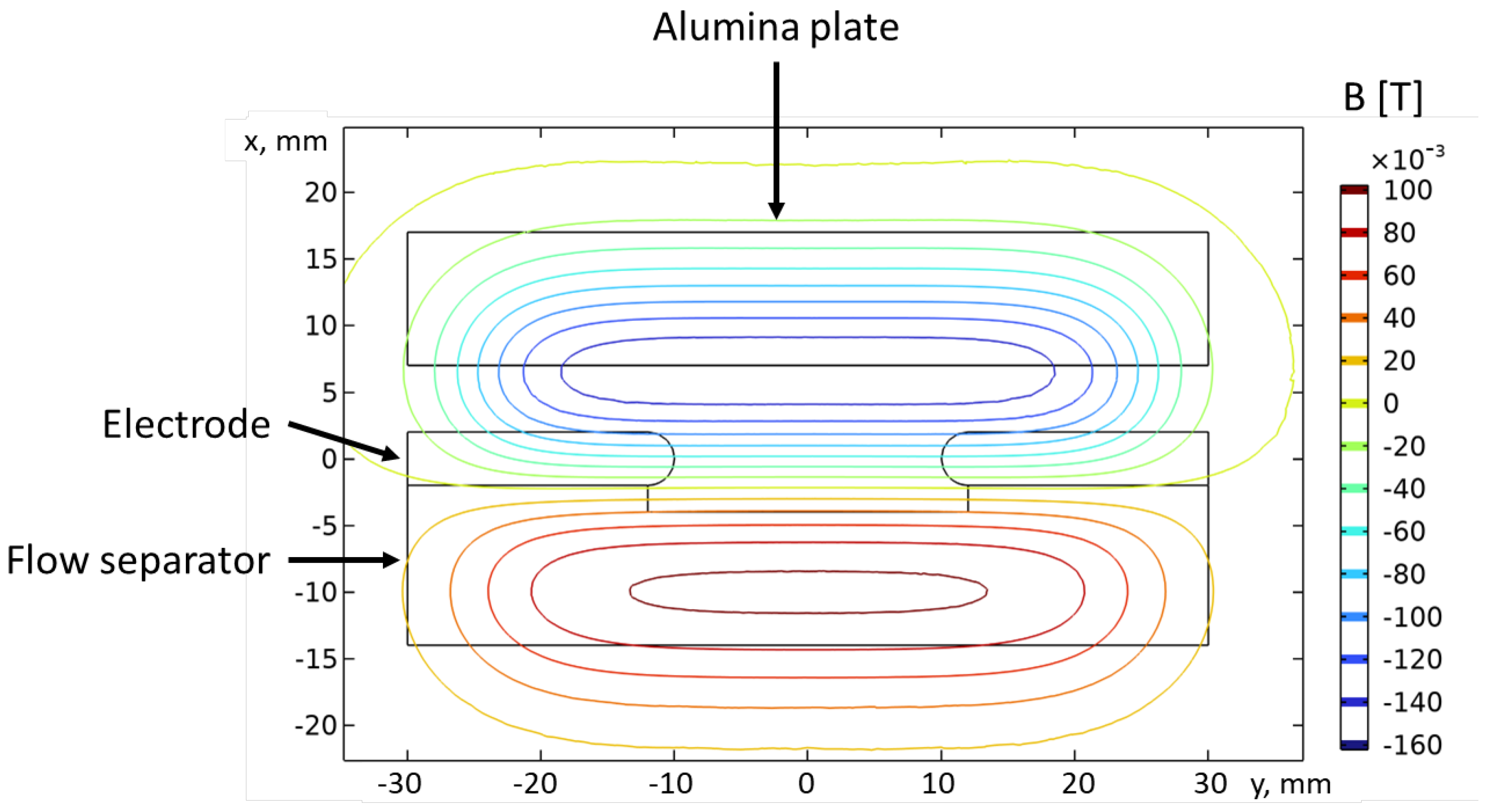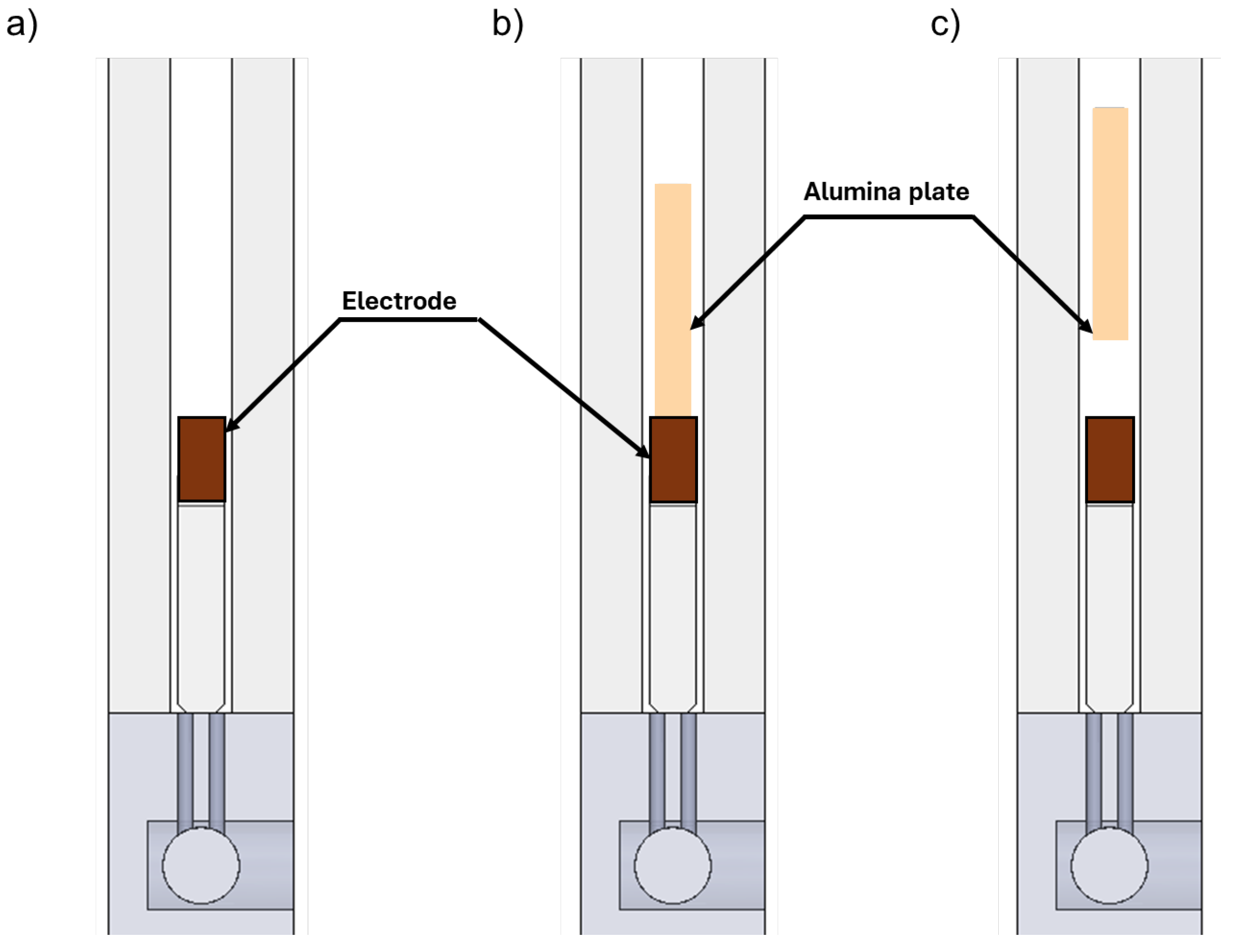 In this section, a comparison between the different quenching configurations is presented. The configurations were as follows: “None” (without quenching alumina); “0 mm”, i.e., the alumina is in contact with the electrodes; and “5 mm”, i.e., the quenching alumina is placed at a distance of 5 mm from the electrodes.