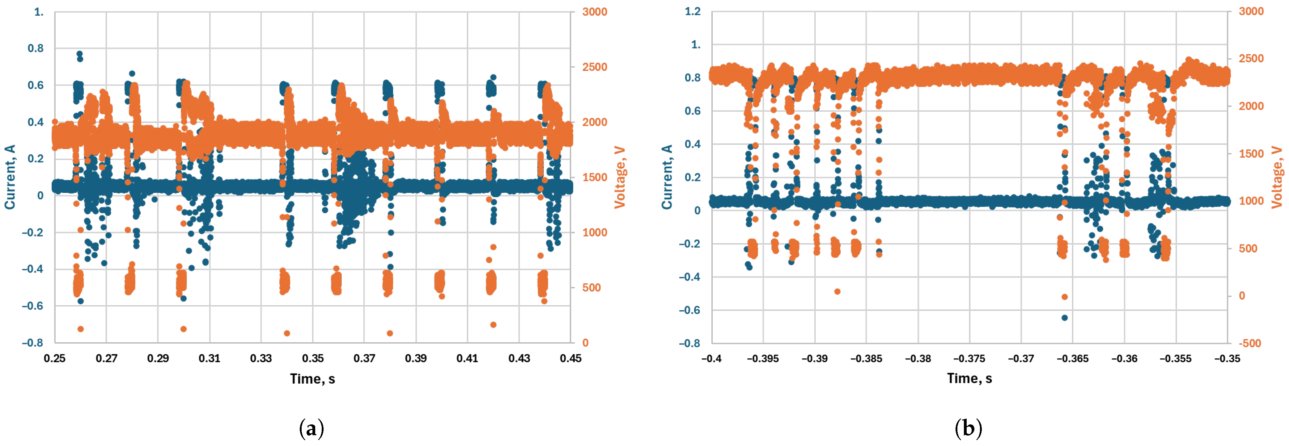 Figure 11b). At the highest frequency (5000 Hz), the discharge achieves stable operation, with consistent transition between low and high current. We suspect that this is due to a residual ionization from the high-current pulses.