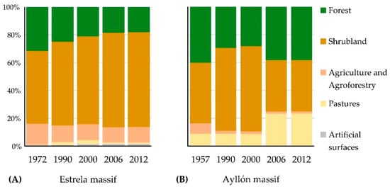 Half-Century Changes in LULC and Fire in Two Iberian Inner Mountain Areas