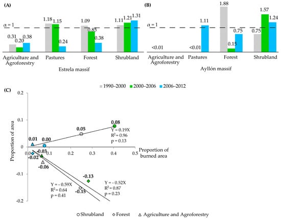 - Almeida, A.C.; Nunes, A.; Figueiredo, A. Mudanças no uso do solo no interior Centro e Norte de Portugal; Imprensa da Universidade de Coimbra: Coimbra, Portugai, 2009; ISBN 978-972-8074-96-6. [Google Scholar]
