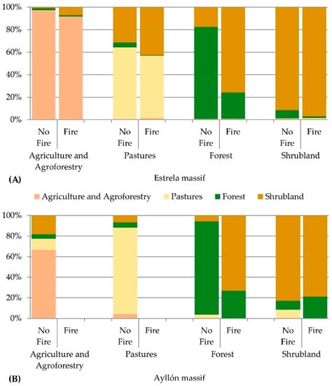 - Silva, J.S.; Vaz, P.; Moreira, F.; Catry, F.; Rego, F. Assessing fire-driven land use dynamics in Portugal. In Proceedings of the VI International Conference on Forest Fire Research, Coimbra, Portugai, 15–18 November 2010. [Google Scholar]