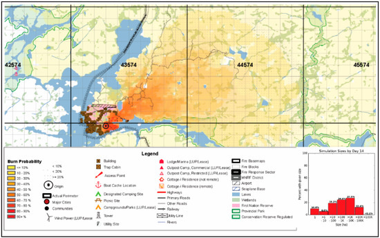- Boychuk, D.; Evens, J.; Leonard, D.; McFayden, C.; McLarty, D.; Wotton, M. FireSTARR: Automated Burn Probability Maps within Minutes of Every Fire Report in Ontario, Canada. Presented at Wildland Fire Canada, Ottawa, ON, Canada, 18–21 November 2019. [Google Scholar]