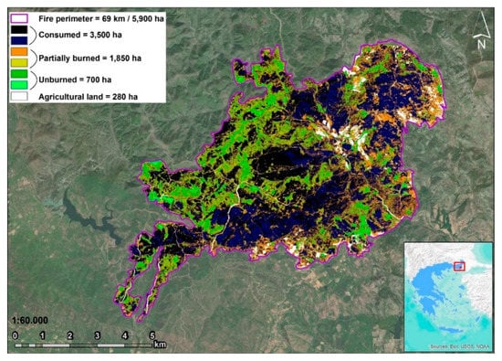 - Stougiannidou, D.; Zafeiriou, E.; Raftoyannis, Y. Forest fires in Greece and their economic impacts on agriculture. KnE Soc. Sci. 2020, 54–70. [Google Scholar] [CrossRef]