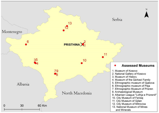 The concept of a museum is not static and has been constantly evolving [14]. It is notably demonstrated by the multiple changes in the definition given by the International Council of Museums (ICOM), which works toward a shared definition among museum professionals [14,15,16]. While a first definition in 1946 was primarily focused on the collections being the key criteria of museums, ICOM aimed at finding a more inclusive definition, which “recognises the dissimilar conditions and practices of museums in diverse and rapidly changing societies, and supports museums in developing and adopting new scientific paradigms and addressing more adequately the complexities of the 21st century” [15]. In the 2001 Cultural Heritage Law in Kosovo, the 1974 definition given by ICOM is stipulated: “a museum is non-profit making, permanent institution in the service of the society and its development, and open to the public, which acquires, conserves, researches, communicates, and exhibits, for purposes of study, education and enjoyment, material evidence of man and his environment” [17].