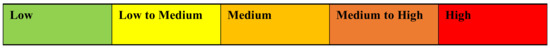 To identify critical vulnerabilities, a ranking approach was used using a verbal description of the vulnerability. For each museum, several categories of vulnerability were identified based on the questionnaire presented in Appendix A. For each of these categories, the vulnerability of each museum was assessed as “low”, “medium”, or “high” following the analysis and the counterbalance of several criteria, specific to each category of vulnerability. In order to further reflect on uncertainties due to a lack of evidence or available information, “in between categories” were created, named “low to medium” and “medium to high” (Figure 2).