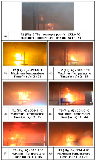 Figure 8 shows a scene where the maximum temperature is reached in the fire test according to the ignition source application method shown in Figure 7.