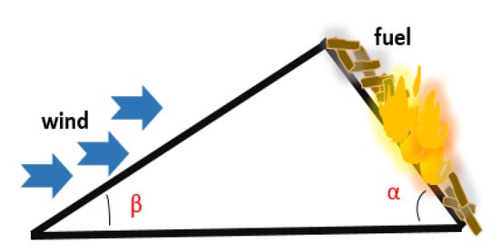 Topographic slope and wind direction are significant factors that determine the direction and spread rate of wildfires. Most analyses of the impacts of slope angle or wind on fire spread rate have been conducted experimentally. Instances are analysed by Fang [22], Sheshukov [23] and Van Wanger [24]. Nelson [19] applied a trigonometric technique to mix the ambient wind speed with the upslope part of a fire’s buoyant speed to define an “effective wind speed” that characterised the fire–wind system. The simulation was examined with information from empirical results by Weise [25] focusing on the effect of slope angle and wind velocity on fire spread. It was shown that the effective wind velocity correlates with Weise’s tests and produces accurate predictions of the fire spread rate when slope and wind were considered. Linn et al. [26] applied the term “point-functional models” to describe simulations employing terrain and wind data at a single point in space to determine the direction and fire spread rate in the experimental domain. The authors presented some instances of conditions in which local data on terrain and wind factors should provide decent fire spread conditions and estimated where the approach would likely not work.