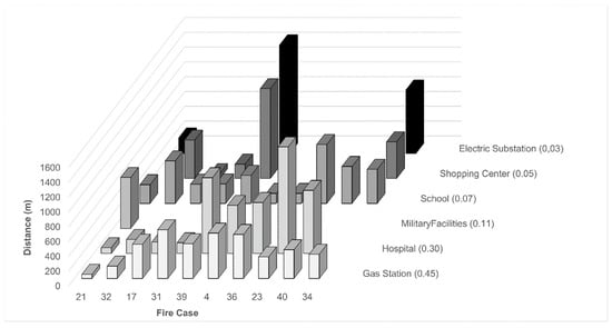 The criteria were compared numerically according to the difference between distances for each fire case using the IDW method along with the AHP. It must be stated that this method has been applied for only 40 fire cases, providing a complete data set at this point. Data from another fire case added to this model would increase the number of processed fire cases; thus, it would be possible to increase the criteria as well.