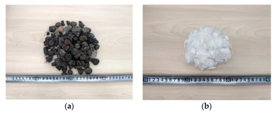 Materials: (a) Scoria aggregate, (b) PP fiber.