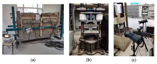 Testing machine: (a) Resistance furnace, (b) Hydraulic pressure testing machine, (c) DIC.