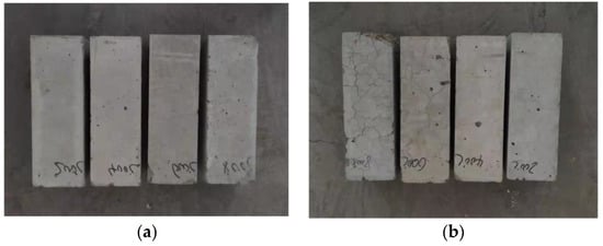 The changes in the color and surface cracks of specimens after high temperatures: (a) SAC, (b) NC.