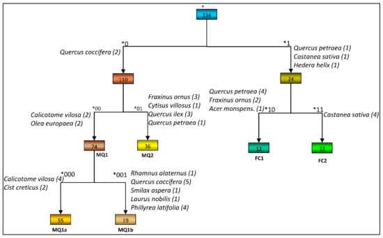 | Quercus coccifera | 19.0 | 7.5 | 20.5 | 41.0 | 17.6 | 37.0 | 13.9 | 16.1 | 9.2 | 1.5 | 3.5 | 0.3 | 0.1 | 0.4 | 0.0 |