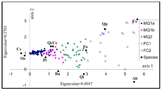 - Hill, M.O.; Gauch, H.G. Detrended Correspondence Analysis: An inmproved ordination technique. Vegetatio 1980, 42, 47–58. [Google Scholar] [CrossRef]