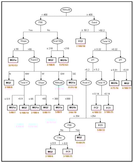 - De’ath, G.; Fabricious, K.E. Classification and regression trees: A powerful yet simple technique for ecological data analysis. Ecology 2000, 81, 3178–3192. [Google Scholar] [CrossRef]
