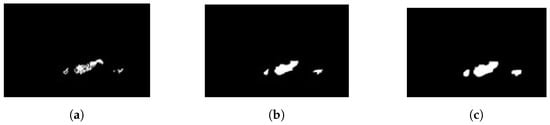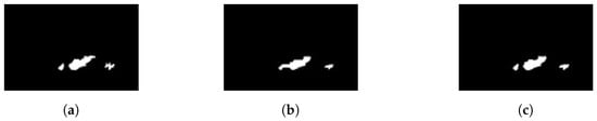 The sample results of morphology operations as post-processing. (a) Segmentation result; (b) closing operation result; (c) dilation operation result.