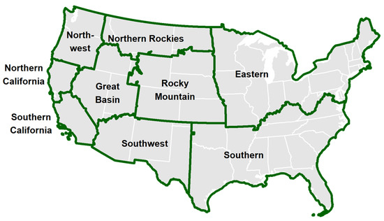 In the US, resource assignments depend on a highly complex, three-tiered, multiagency system [1]. Within this system, local dispatch centers are responsible both for sending resources out to respond to initial fire reports and for filling resource orders from large fire incidents. Geographic Area Coordination Centers (GACCs) are responsible for facilitating regional-level resource sharing between non-neighboring local areas and supplying additional resources once local resources are depleted [2]. There are ten GACCs in the US, each associated with a specific geographic area (Figure 1). The National Interagency Coordination Center (NICC) is responsible for facilitating resource sharing between geographic areas and supplying national resources to geographic areas once regional and local resources are depleted [1]. Each fire season, this system oversees the distribution of firefighting resources that travel extensively to provide support for large incidents [3,4]. Even with this additional capacity provided by national-level resource sharing, geographic areas still routinely have challenges with resource scarcity [4].