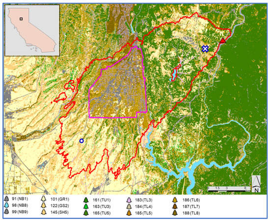 - Keeley, J.E.; Syphard, A. Historical patterns of wildfire ignition sources in California ecosystems. Int. J. Wildland Fire 2018, 27, 781. [Google Scholar] [CrossRef] [Green Version]