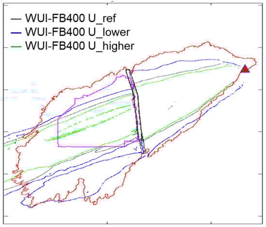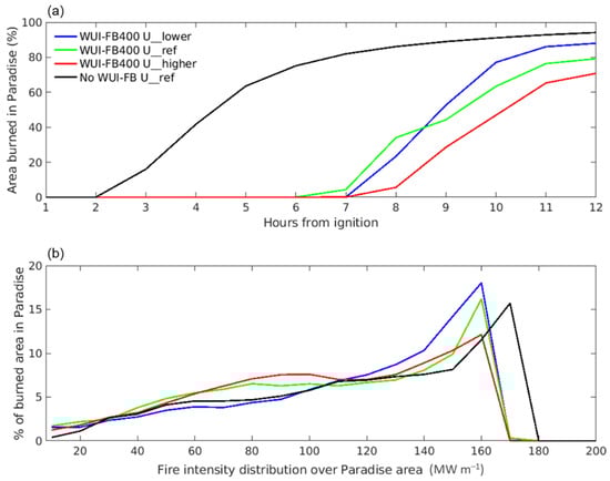 | WUI-FB400 U_lower | constant | uniform | YES (400 m) | with a 400 m WUI fuel break and 25% lower wind speed than reference run |
