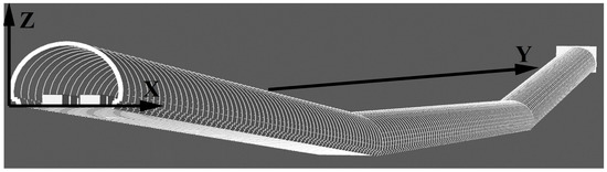 - In the initial stage, the pressure inside the tunnel was P = 101 kPa, each velocity component was zero, and the air temperature was T = 20 °C;