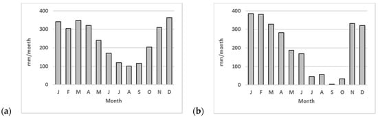 Precipitation patterns for the Mawas study region in Central Kalimantan, Indonesia. (a) Average monthly precipitation, 1983–2020. (b) Average monthly precipitation, 2015 (data source Global Precipitation Climatology Project (GPCP) and Global Precipitation Measurement (GPM)).
