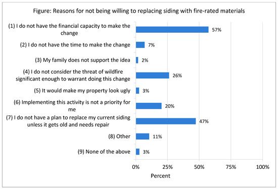 Reasons for not being willing to replacing siding with fire-rated materials (participants were able to select multiple responses).