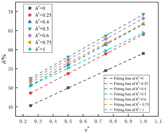 It can be seen from Figure 9 that δ and v* show a linear positive correlation. The fitted linear relationship is shown in Table 1.
