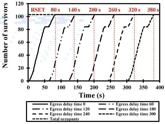 - The egress simulation of a prototype nursing hospital was performed considering occupant characteristics. The simulation revealed that the RSET tended to increase as the number of egress guides decreased and the egress delay time increased.