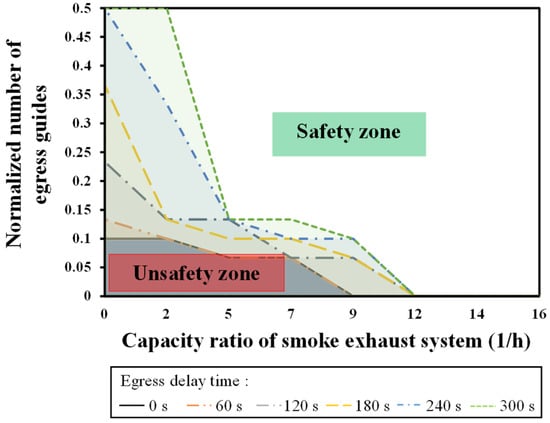 - This study proposed egress safety criteria for a typical nursing hospital with the normalized number of egress guides, capacity ratio of the smoke exhaust system, and egress delay time as variables. The proposed criteria can be used to evaluate the egress safety performance of a typical nursing hospital without having to perform a new simulation. In the case of an actual nursing hospital, a method can be selected in terms of cost and efficiency to increase egress safety.