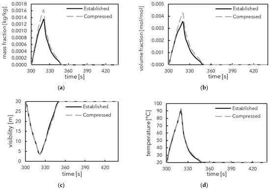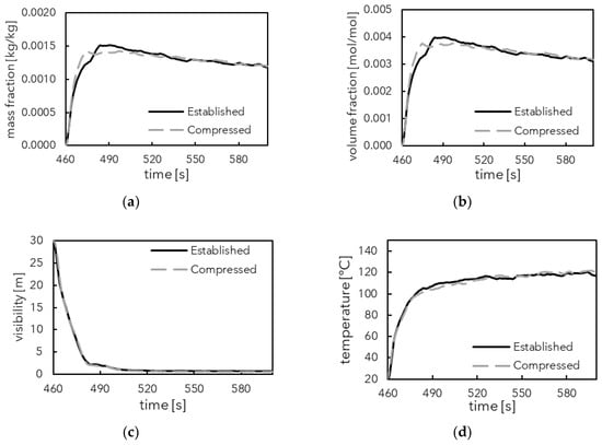 | Soot mass fraction | Full corridor volume * | 8.09 × 10−5 kg/kg | 0.06 |