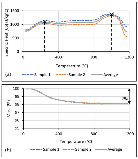 (a) Specific heat and (b) mass loss of expanded perlite.