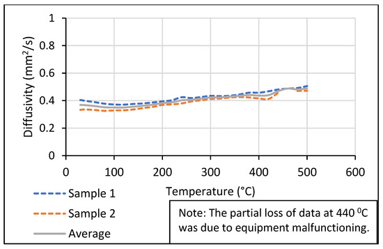 In addition to the chemical and physical properties of perlite aggregate, thermal properties such as specific heat, mass loss, and thermal diffusivity at elevated temperatures (Figure 4 and Figure 5) were determined using simultaneous thermal and laser flash analyzers.