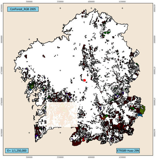 ConForest_RGB coding for Galicia (2005), as well as a window showing the area represented in Figure 6.