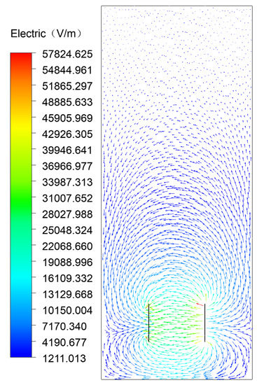 The electric field strength between the electrode plates when the resulting applied AC electric field is not calculated, as shown in Figure 2. Where the applied electric field voltage U = 5 KV, the electrode distance is L = 150 mm, and the length of the electrode plate is 100 mm.