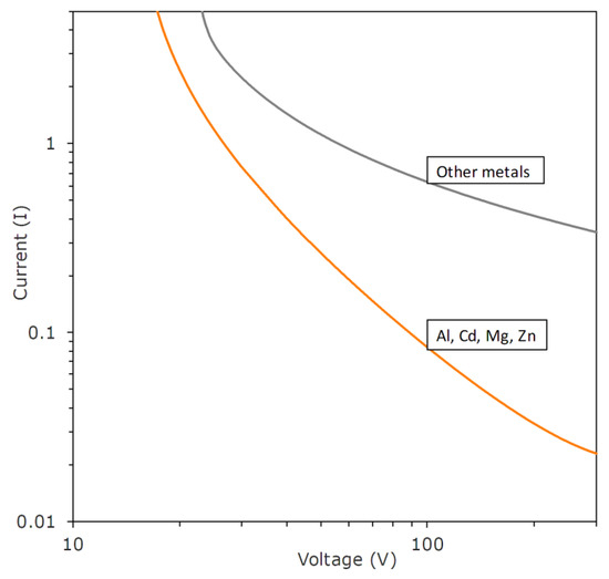 This grouping appears to have some relation to Im, but the details are not entirely clear. The values of Im for Cu are 0.45 A and for Fe 0.72 A. Meanwhile, Cd = 0.03 A and Zn = 0.03 A. However, Al = 0.4 A; thus, the basis for the constituency of the ‘sensitive’ group is unclear. Further research by Zborovszky [26] showed that, at least with some materials, surface condition also plays a major role. If arcing residues are allowed to accumulate, such conditions promote the initiation and continuation of a discharge.
