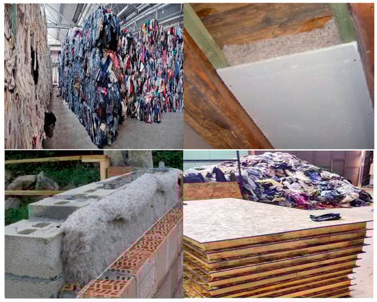 - Briga-Sá, A.; Nascimento, D.; Teixeira, N.; Pinto, J.; Caldeira, F.; Varum, H.; Paiva, A. Textile waste as an alternative thermal insulation building material solution. Constr. Build. Mater. 2013, 38, 155–160. [Google Scholar] [CrossRef]