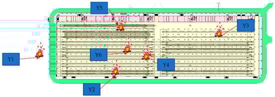 Based on the above literature, we conservatively selected a fire scale of 20 MW for the van, and selected 6 m × 2 m for the size of the van. Based on the above analysis, the fire types and scales of this project were determined as shown in Table 5.